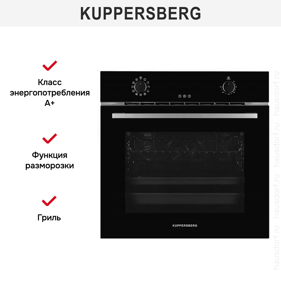 Электрический духовой шкаф Kuppersberg FH 611 B в классическом черном исполнении дополнен контрастными декоративными элементами. Модель в таком оформлении сможет стать прекрасным дополнением вашего кухонного гарнитура, какой бы стиль вы ни предпочитали. Она прекрасно впишется как в оформление в стиле хай-тек, так и в более традиционный интерьер. Благодаря особенностям конструкции прибор может быть установлен как под столешницу, так и в колонну с другой бытовой техникой.