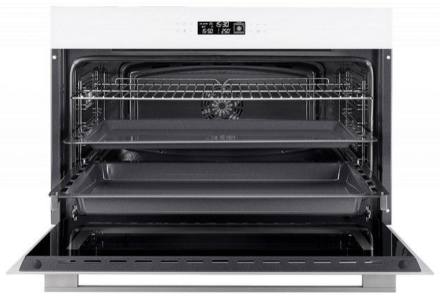 Дизайн духовки стильный и современный. Она идеально вписалась в интерьер моей кухни и стала ее украшением. А белый цвет добавляет ей элегантности и легкости.