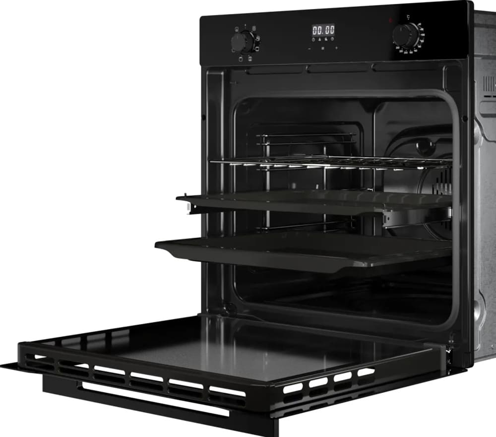 Особенности дизайна и внешней панели управления — также важный пункт при выборе духовки на кухню. В данной модели нужно обратить внимание на цвет — черный,