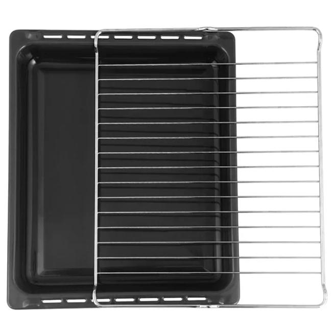 В стандартную комплектацию любого духового шкафа входят один или два противня — эмалированных или с антипригарным покрытием — и решетка. Единственный противень, как правило, имеет низкие бортики и предназначается для приготовления выпечки. Если духовка комплектуется двумя противнями, то второй отличается более высокими бортиками — его можно использовать для запекания мяса, птицы, овощных блюд. На решетке в духовке, не оснащенной грилем, обычно устанавливаются формы для запекания — стальные, керамические или стеклянные. В духовках премиум-класса количество противней может быть увеличено: к стандартному комплекту добавляются противни с перфорацией для мяса, специальные поддоны для сбора выделившегося сока.