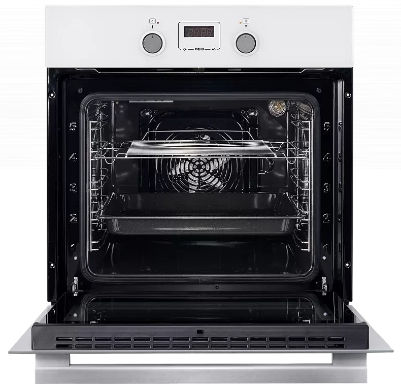 Продуманное управление и утапливаемые переключатели комфортны в эксплуатации. Функция быстрого разогрева поможет в короткое время достичь нужной температуры и позволит сэкономить время и электроэнергию. Принудительная циркуляция воздуха обеспечивает равномерный нагрев, что гарантирует качественное пропекание блюд. Предусмотрен таймер для наиболее удобной организации работы.