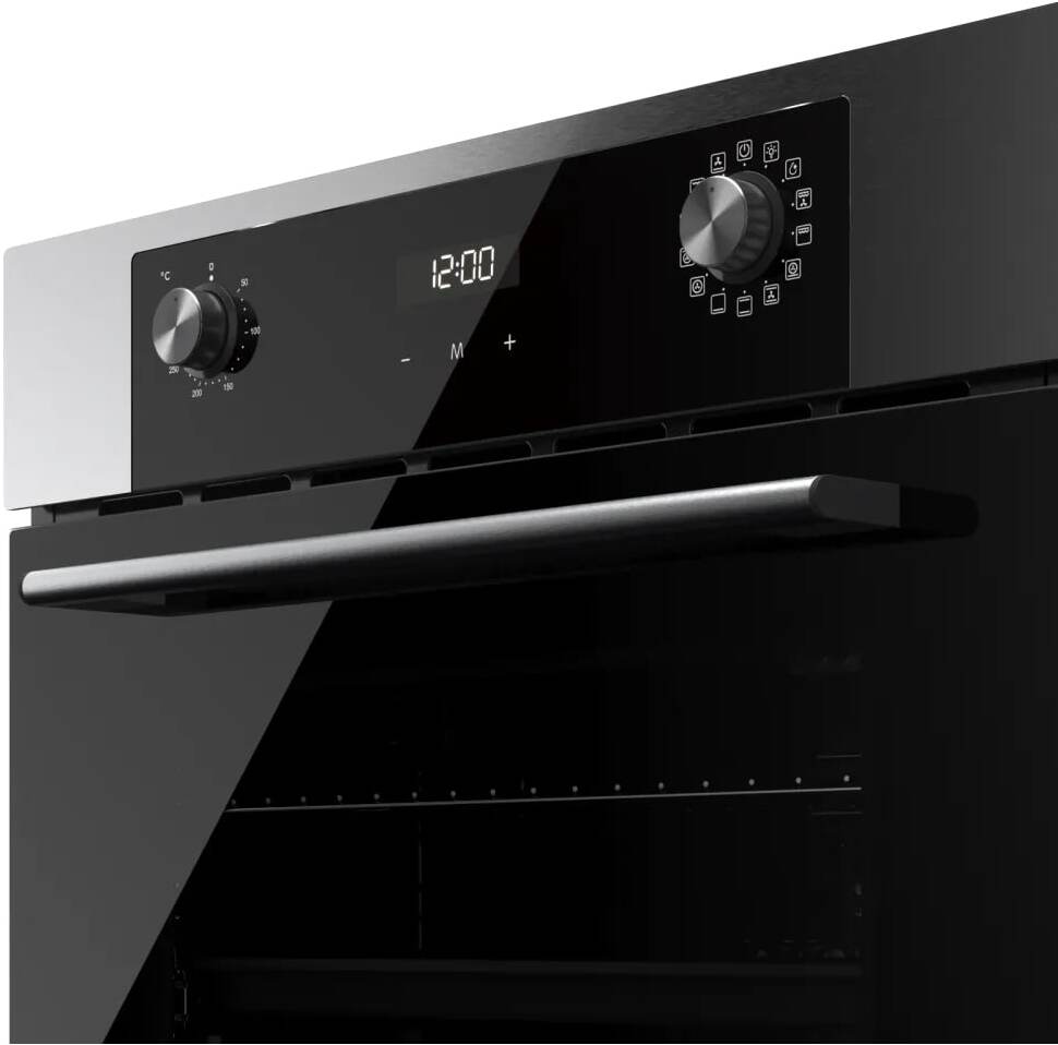 Особенности дизайна и внешней панели управления — также важный пункт при выборе духовки на кухню. В данной модели нужно обратить внимание на цвет — черный/нержавеющая сталь,