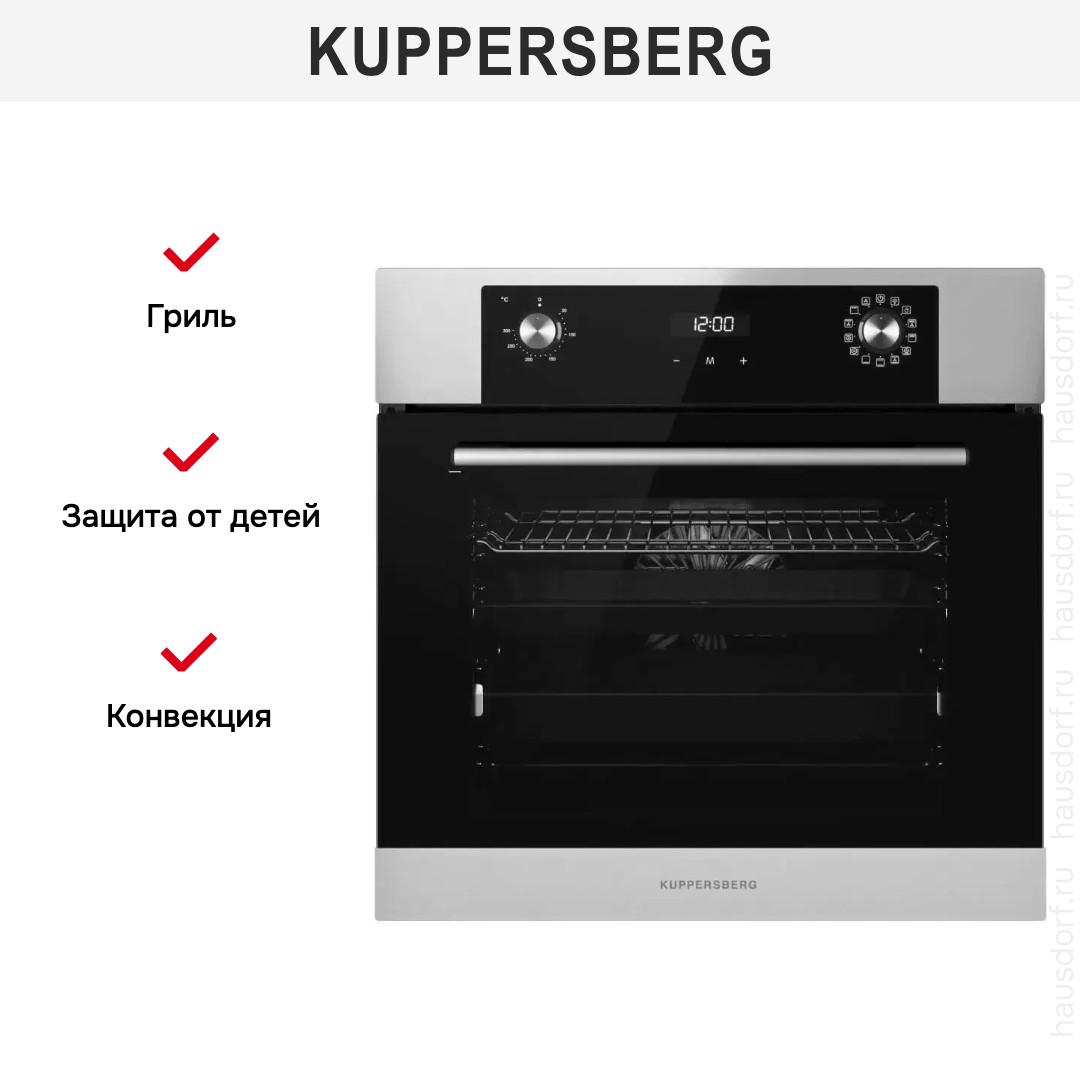 Количество режимов работы в духовом шкафу Куперсберг: 12. В число доступных программ входят: классический нагрев, нижний нагрев, конвекция, гриль для создания хрустящей корочки, и другие. Помимо основных программ воспользуйтесь специальными возможностями этого прибора: быстрым разогревом для ускорения работы; и другими. Тип гриля в этой модели — электрический.