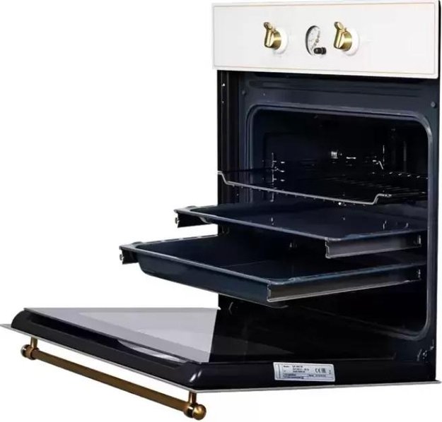 Функциональный духовой шкаф с ретро-ручками. Модель с девятью режимами нагрева и каталитической очисткой сделает процессы приготовления пищи и ухода за прибором максимально комфортными.
