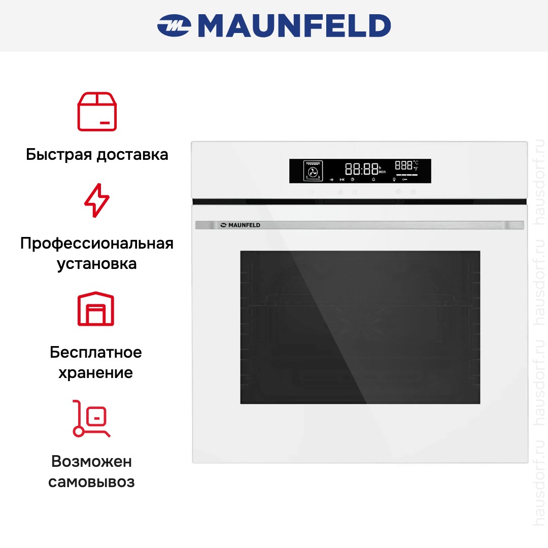 Готовьте свои лучшие блюда и пробуйте новые рецепты с духовым шкафом Maunfeld AEOD60106W! Стандартные размеры и большой объем внутренней камеры — выбор тех, кто много готовит для семьи или частых праздничных встреч с друзьями. Желательно заранее продумать расположение такой модели в кухонном гарнитуре.