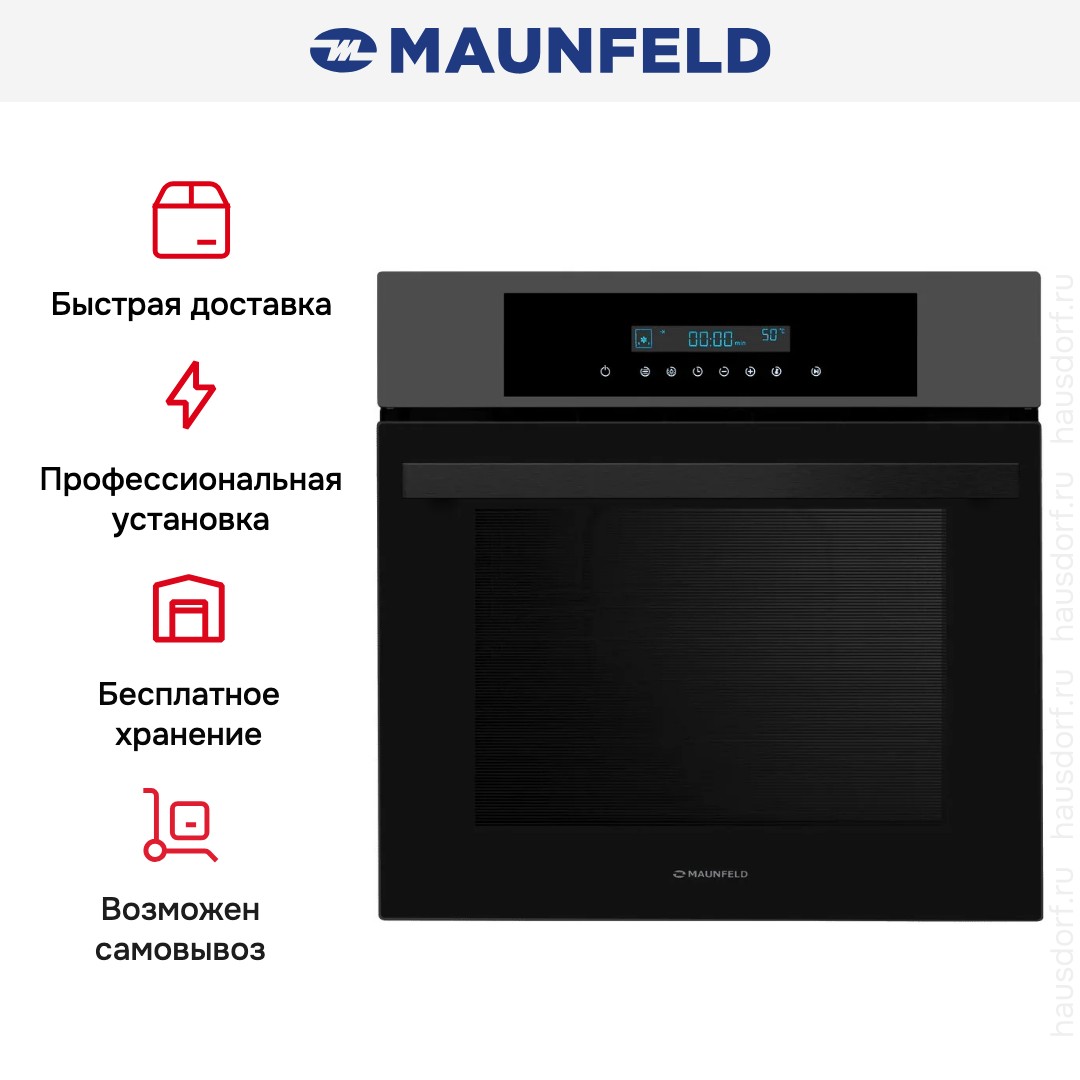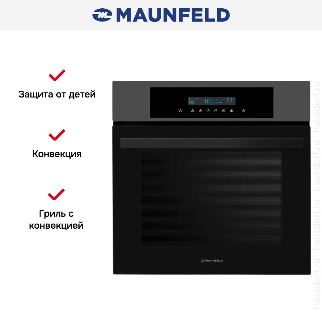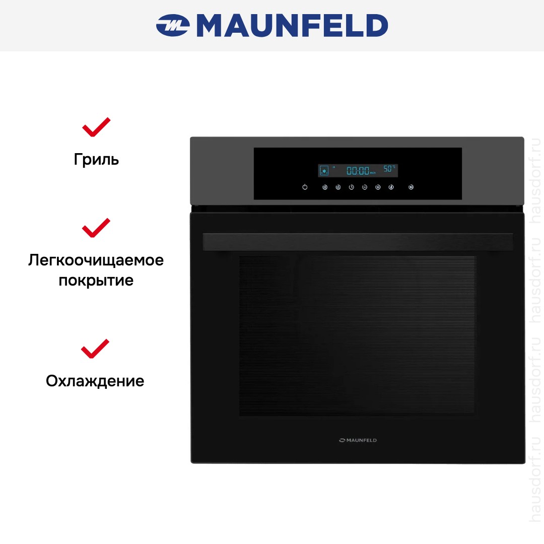 Maunfeld AEOD6063G1 — это независимая духовая камера с фасадом не самого частого графитового оттенка, предназначенная для тех, кто ценит сдержанную элегантность. В ней сочетается матовая фурнитура и приглушённый блеск стекла, каждая деталь выглядит стильно и продуманно: от дверцы с тройным стеклом до аккуратного цифрового дисплея.