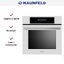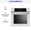 Этот независимый духовой шкаф подключается к электросети и рассчитан на напряжение 220-240 В при частоте 50/60 Гц. Корпус белого цвета дополнен современными деталями: нержавеющей стальной фурнитурой, стеклянной многослойной откидной дверцей, черной сенсорной панелью управления. Объемная камера на 60 л может освещаться изнутри, что делает прибор удачным решением для ежедневного применения или кулинарных экспериментов. Внутренняя поверхность покрыта эмалью легкой очистки, в комплекте поставляются решетка и противень, а очищение реализовано традиционным способом.