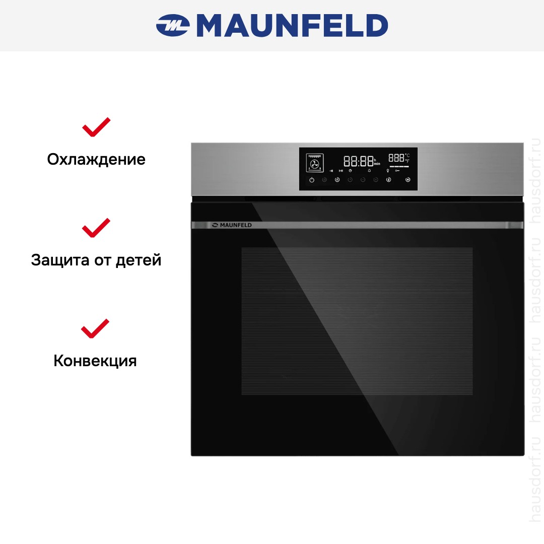 Готовьте свои лучшие блюда и пробуйте новые рецепты с духовым шкафом Maunfeld AEOD76106S! Стандартные размеры и большой объем внутренней камеры — выбор тех, кто много готовит для семьи или частых праздничных встреч с друзьями. Желательно заранее продумать расположение такой модели в кухонном гарнитуре.