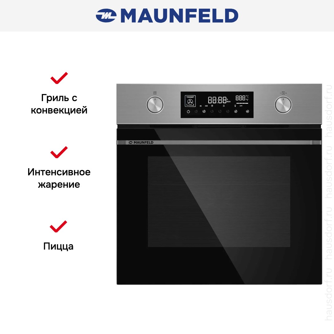 Количество режимов работы в духовом шкафу Маунфилд: 10. В число доступных программ входят: классический нагрев, конвекция, гриль для создания хрустящей корочки, пицца, и другие. Помимо основных программ воспользуйтесь специальными возможностями этого прибора: быстрым разогревом для ускорения работы; и другими.