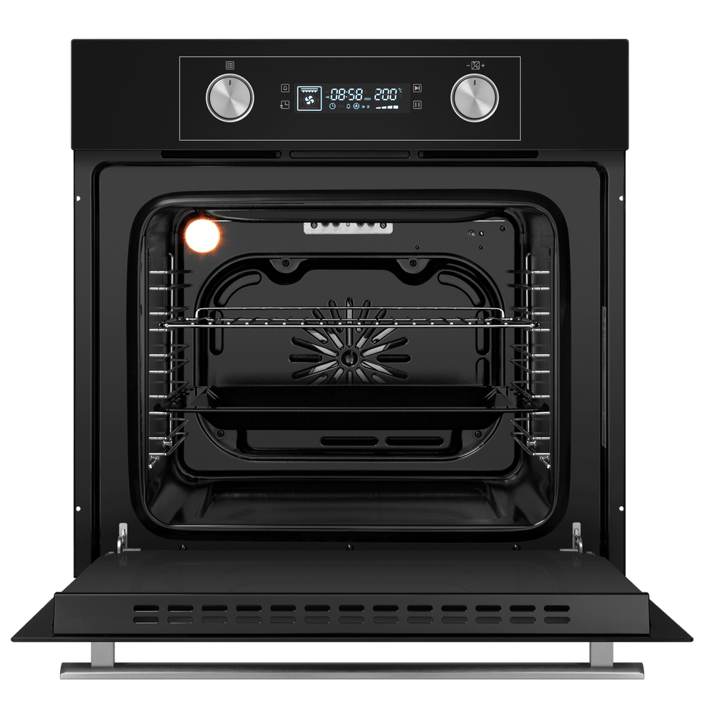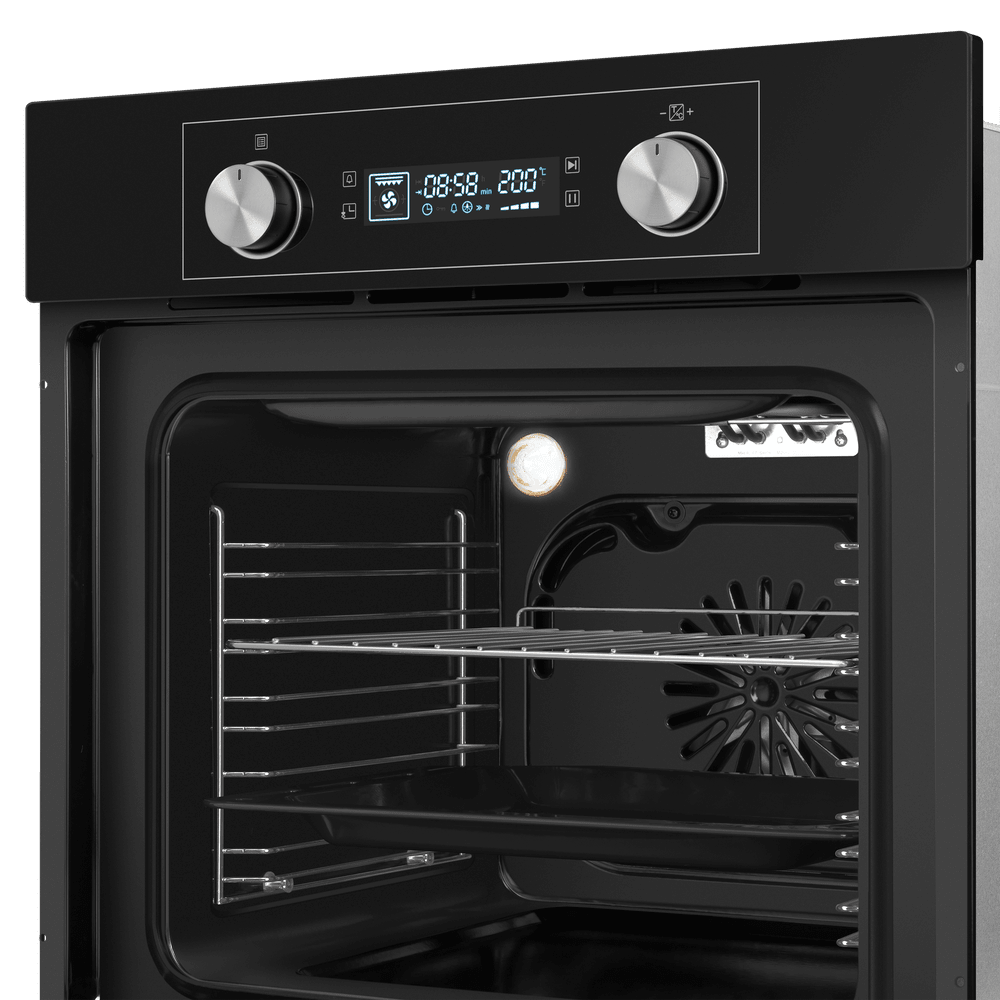 Особенности дизайна и внешней панели управления — также важный пункт при выборе духовки на кухню. В данной модели нужно обратить внимание на цвет — черный,