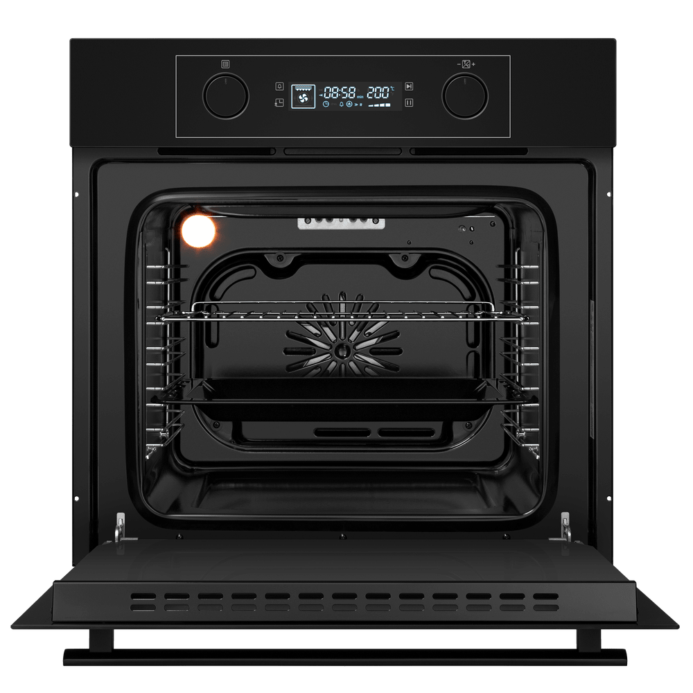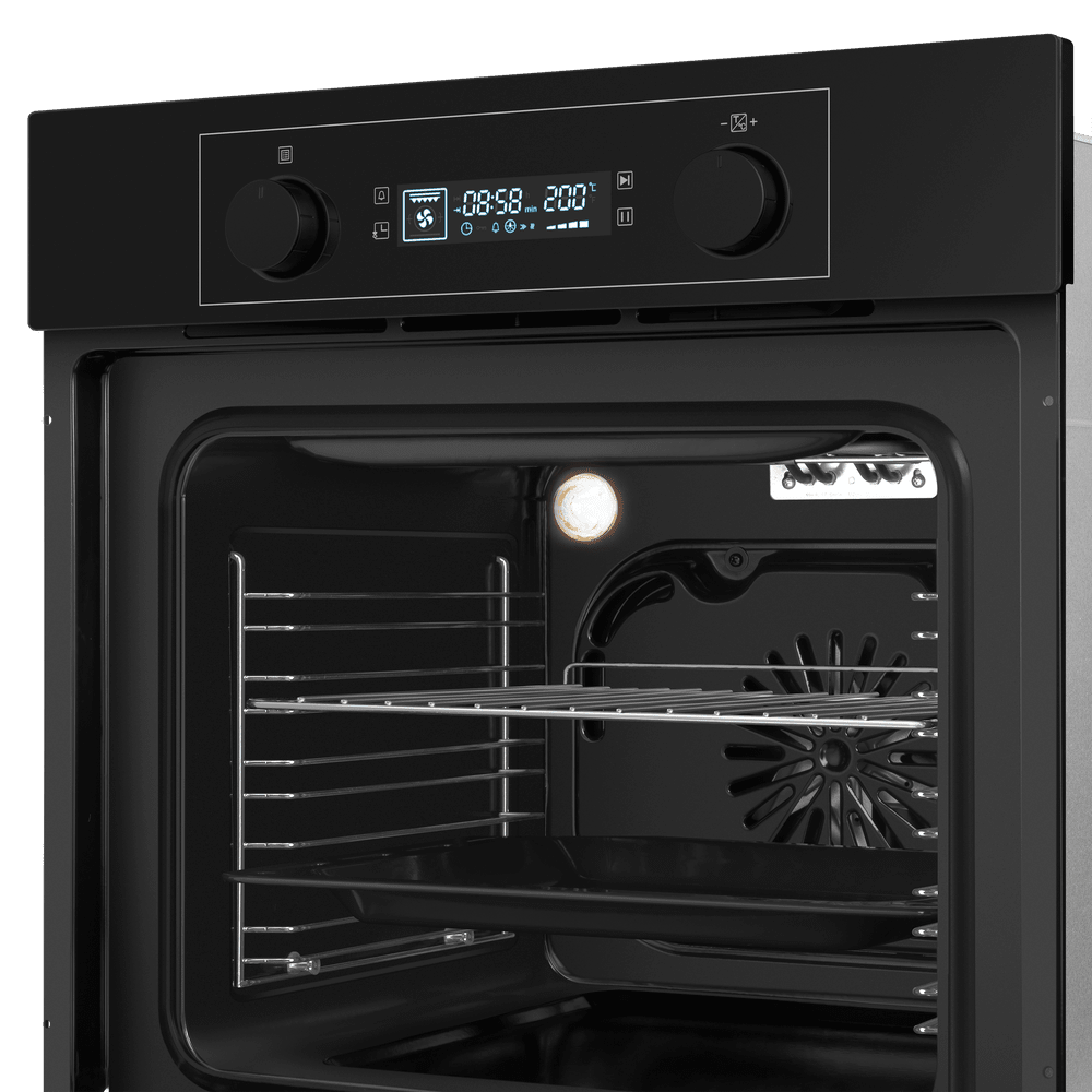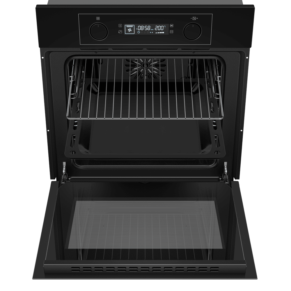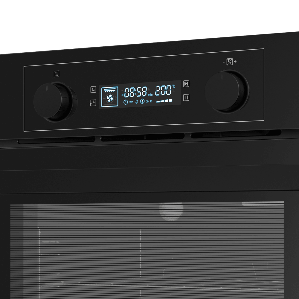 Особенности дизайна и внешней панели управления — также важный пункт при выборе духовки на кухню. В данной модели нужно обратить внимание на цвет — черный,
