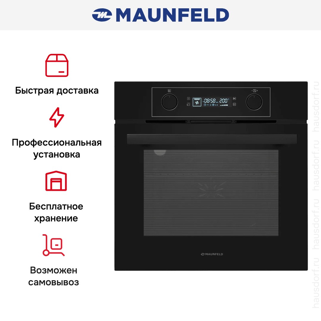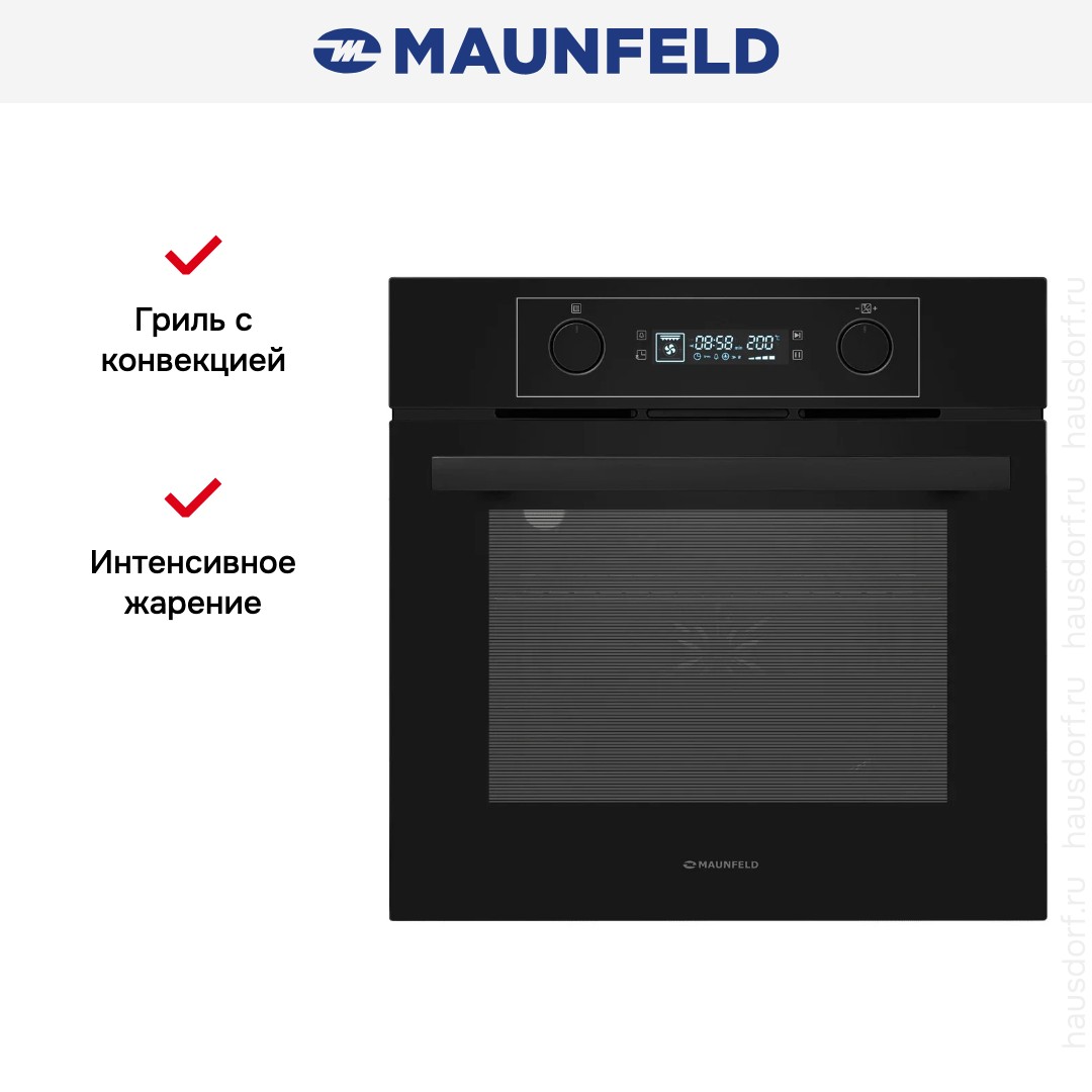 Духовой шкаф Maunfeld AEOH6062B2 — вместительный электрический прибор в лаконичном чёрном оформлении, созданный для тех, кто ценит строгий внешний вид, практичность и удобство в обращении.
