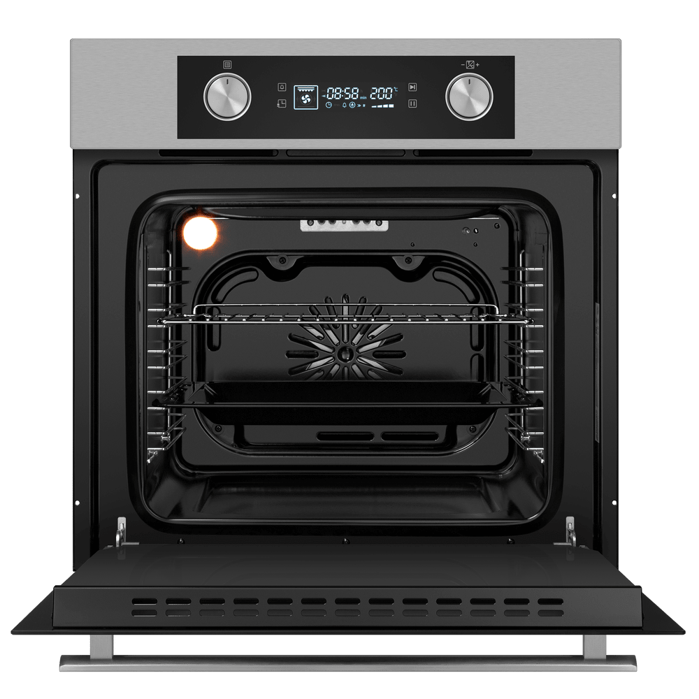 Духовые шкафы объема от 70 литров и более — вместительные полноразмерные приборы, которые отличаются большим набором функциональных возможностей. Высота таких духовок обычно составляет 60 см, ширина же может варьироваться в широком диапазоне: от стандартных 60 см до 90 см и даже 120 см. Количество уровней приготовления может достигать пяти.