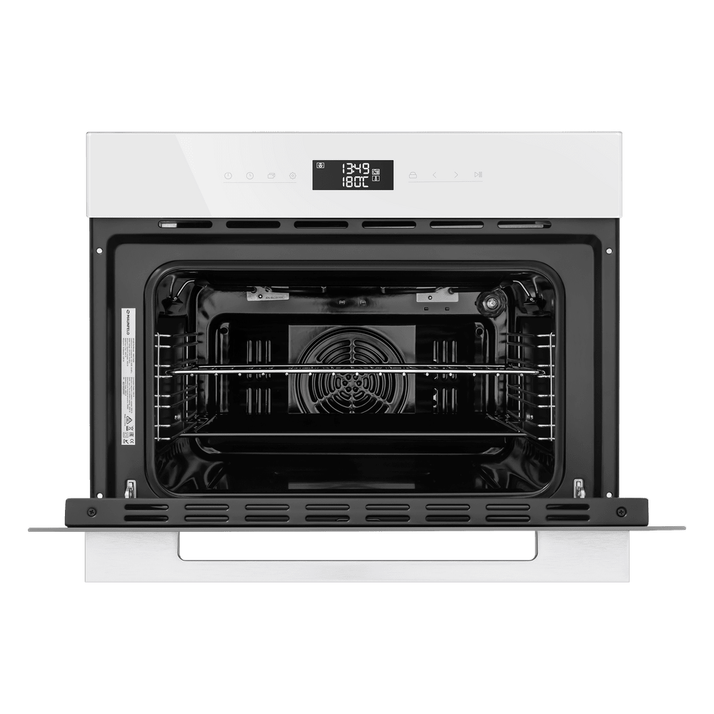 Особенности дизайна и внешней панели управления — также важный пункт при выборе духовки на кухню. В данной модели нужно обратить внимание на цвет — белый, охлаждение двери, чтобы поверхность и мебель вокруг не нагревались.