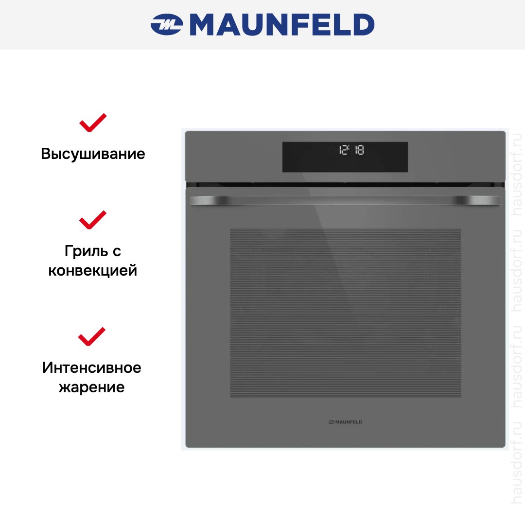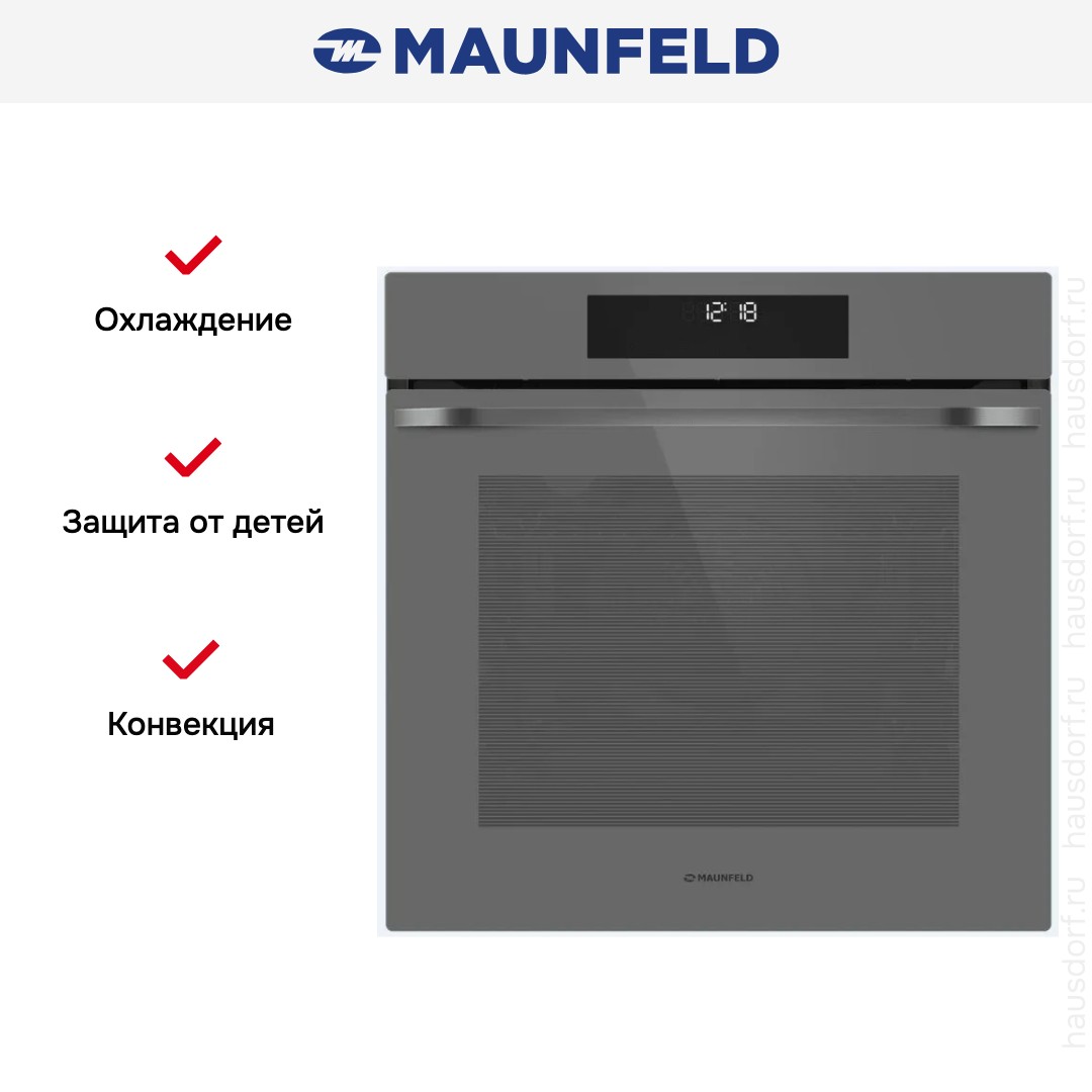 Maunfeld EOEH7614DGR — независимая электрическая духовка, практичная, выдержанная в строгой современной эстетике. Корпус и фурнитура из нержавеющей стали в спокойном сером тоне создают ощущение профессионализма, при этом необычно смотрятся в жилом пространстве. Дверца откидного типа с тремя стеклами и системой холодной поверхности обеспечивает безопасность при эксплуатации и добавляет визуальную глубину передней панели.