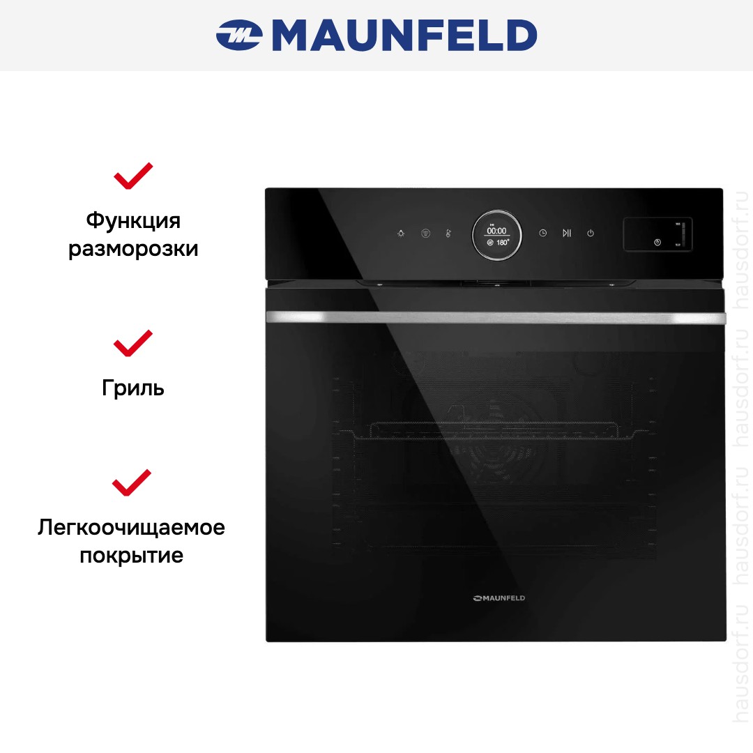 Готовьте свои лучшие блюда и пробуйте новые рецепты с духовым шкафом Maunfeld EOEH7617STB! Стандартные размеры и большой объем внутренней камеры — выбор тех, кто много готовит для семьи или частых праздничных встреч с друзьями. Желательно заранее продумать расположение такой модели в кухонном гарнитуре.