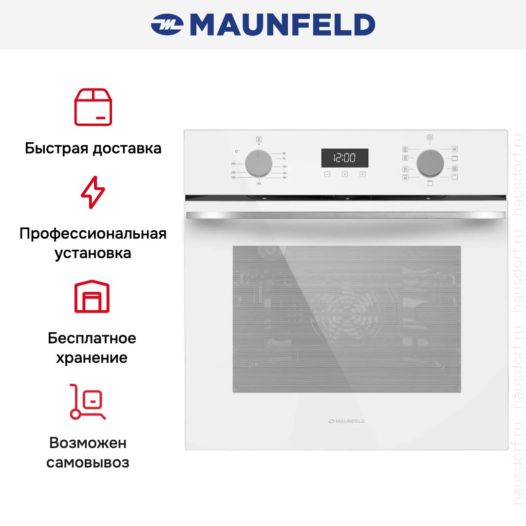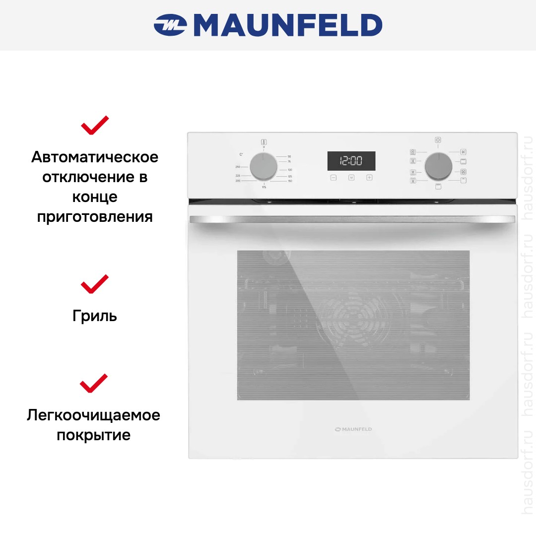 Полноразмерная модель высотой и шириной 59.5 см, глубиной 57.5 см встраивается в нишу под варочной панелью или отдельно. Вместительная камера объёмом 76 л предусматривает пять уровнями приготовления. Максимальная температура нагрева достигает 250 °C. В набор режимов входят традиционный нагрев, отдельная работа верхнего и нижнего ТЭНа, конвекция, режим «пицца», интенсивное жарение, а также гриль и гриль с конвекцией; есть комбинированный режим конвекции с нижним нагревом. Освещение внутренней камеры и эмалевое покрытие с лёгкой очисткой облегчают уход. Для удобства эксплуатации предусмотрены часы, таймер и автоматическое отключение по окончании приготовления.