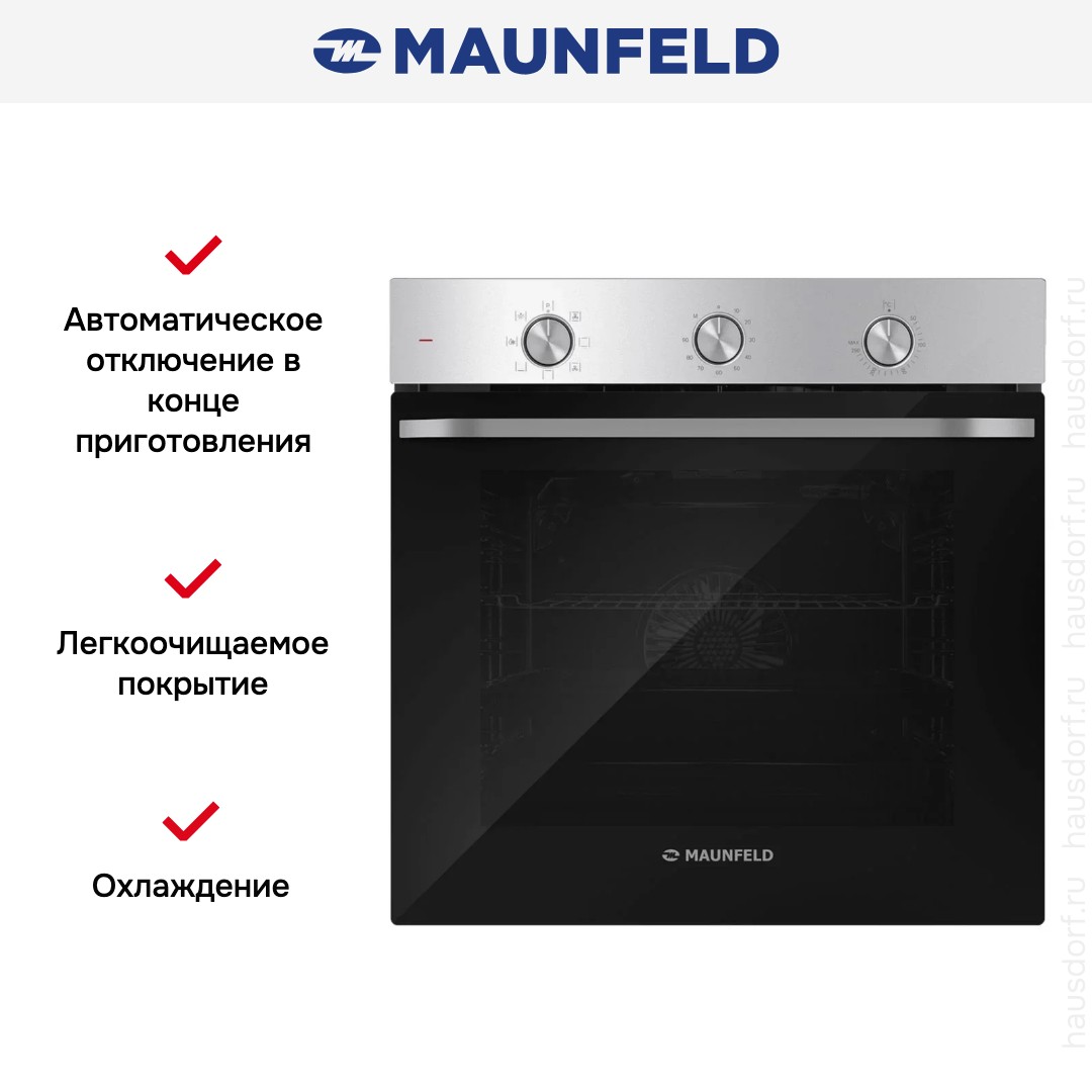 Модель оснащена базовым набором из семи режимов работы: в их число входят верхний/нижний нагрев, раздельный верхний и нижний, конвекция, интенсивное жарение и сочетание вентилятора с нижним нагревом. Духовка подойдет для выпечки, приготовления больших кусков мяса с корочкой, запекания или тушения. Внутреннее покрытие — эмаль лёгкой очистки — облегчает уход, а освещение камеры улучшает визуальный контроль готовности. Техника независимая, необходимо электрическое подключение к сети 220-240 В частотой 50/60 Гц. Температура регулируется в диапазоне от 50 до 250 °C. Устройство относится к высокому классу энергопотребления A. Встроенная система тангенциального охлаждения и автоматическое отключение по окончании программы повышают безопасность, а в комплекте идут решётка и глубокий поддон для разных способов приготовления.
