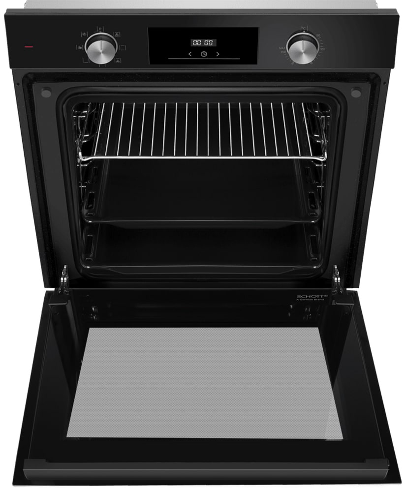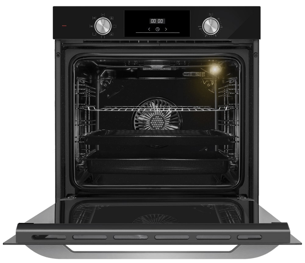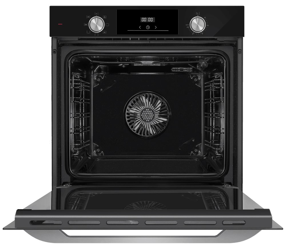 Особенности дизайна и внешней панели управления — также важный пункт при выборе духовки на кухню. В данной модели нужно обратить внимание на цвет — черный,