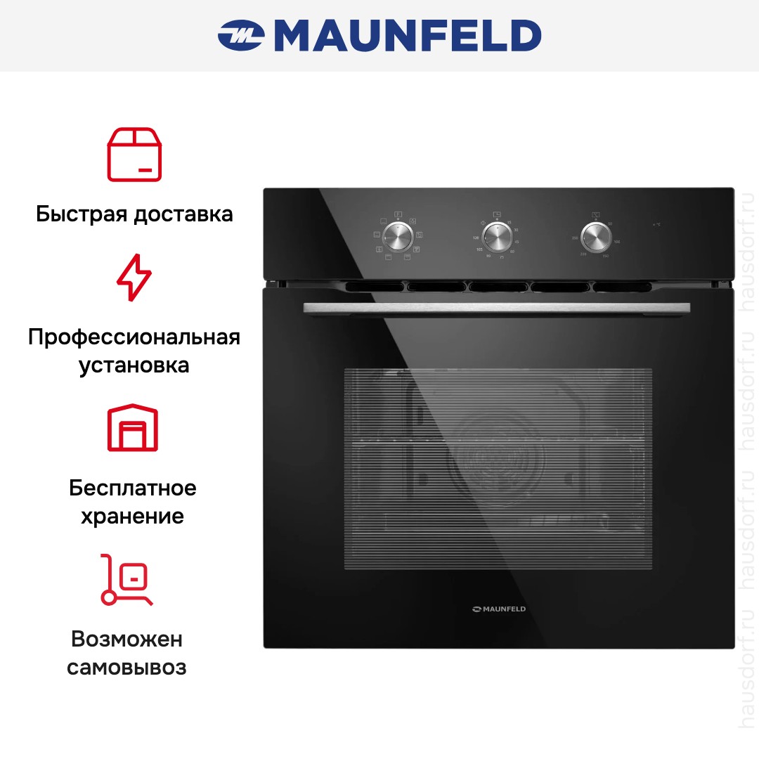 Готовьте свои лучшие блюда и пробуйте новые рецепты с духовым шкафом Maunfeld MEOC708PB! Стандартные размеры и большой объем внутренней камеры — выбор тех, кто много готовит для семьи или частых праздничных встреч с друзьями. Желательно заранее продумать расположение такой модели в кухонном гарнитуре.