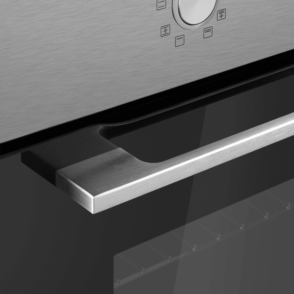 Особенности дизайна и внешней панели управления — также важный пункт при выборе духовки на кухню. В данной модели нужно обратить внимание на цвет — нержавеющая сталь, охлаждение двери, чтобы поверхность и мебель вокруг не нагревались. Механическая панель управления позволяет быстро разобраться в настройке программ и не требует чрезмерных усилий.