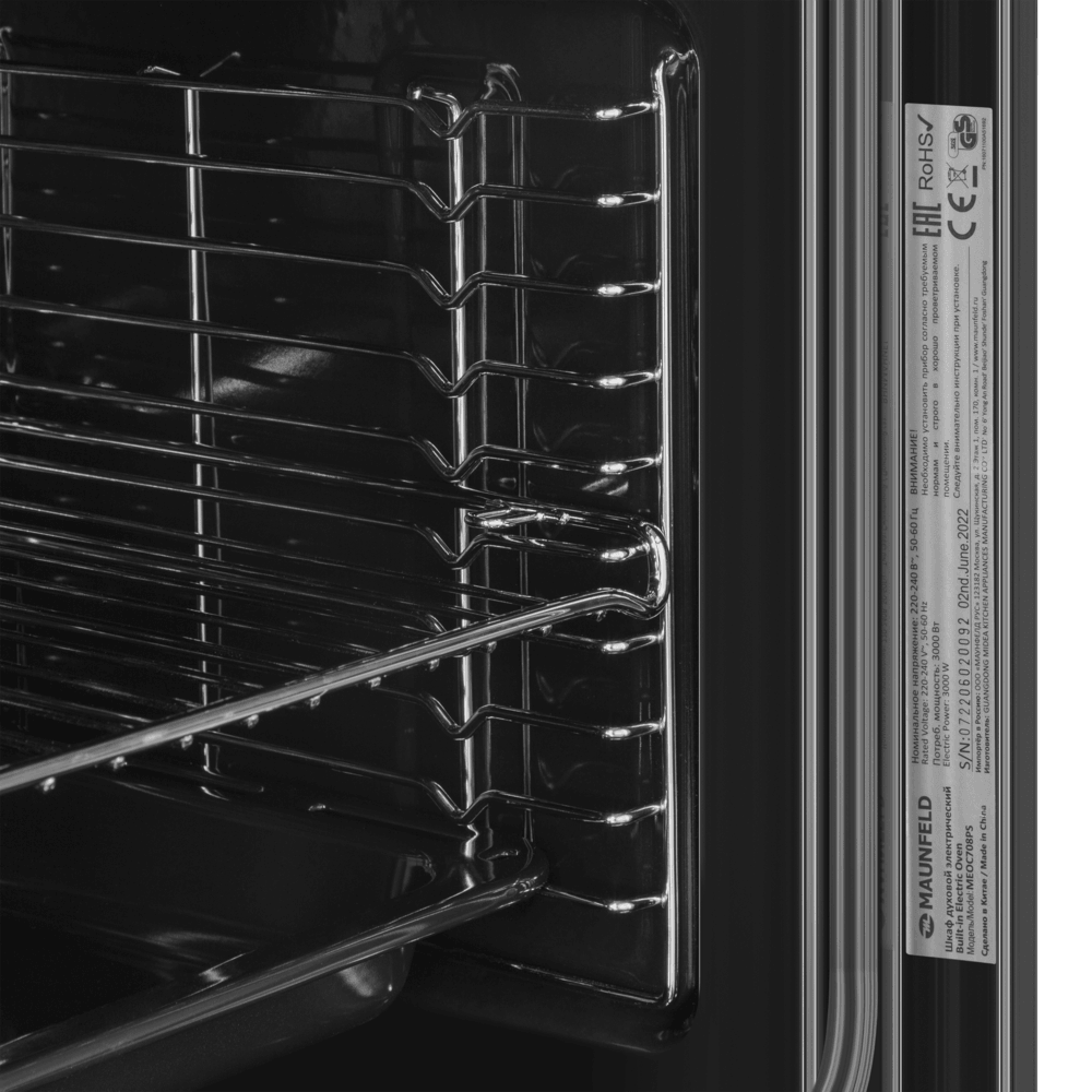 Готовьте свои лучшие блюда и пробуйте новые рецепты с духовым шкафом Maunfeld MEOC708PS! Стандартные размеры и большой объем внутренней камеры — выбор тех, кто много готовит для семьи или частых праздничных встреч с друзьями. Желательно заранее продумать расположение такой модели в кухонном гарнитуре.