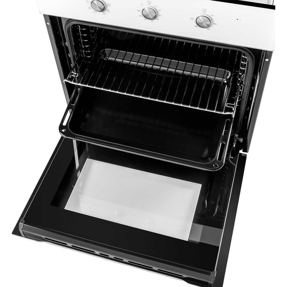 Особенности дизайна и внешней панели управления — также важный пункт при выборе духовки на кухню. В данной модели нужно обратить внимание на цвет — белый, охлаждение двери, чтобы поверхность и мебель вокруг не нагревались. Механическая панель управления позволяет быстро разобраться в настройке программ и не требует чрезмерных усилий.