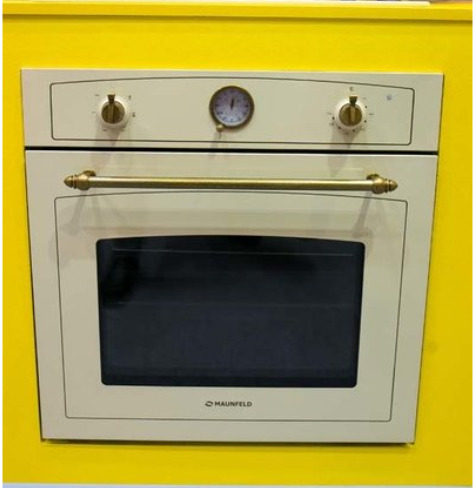 Электрический духовой шкаф в ретро дизайне станет отличным дополнением для интерьерных решений в стиле прованс. Уютный теплый бежевый цвет дополнен бронзовой фурнитурой. Часы, располагающиеся по центру, дополнены рамкой. Ручки обладают плавным ходом, но при этом четким позиционированием на выбранном режиме работы или типе нагрева. Панорамное остекление и внутреннее освещение позволяют контролировать процесс приготовления без открытия дверцы. Это особенно важно при готовке бисквитов.