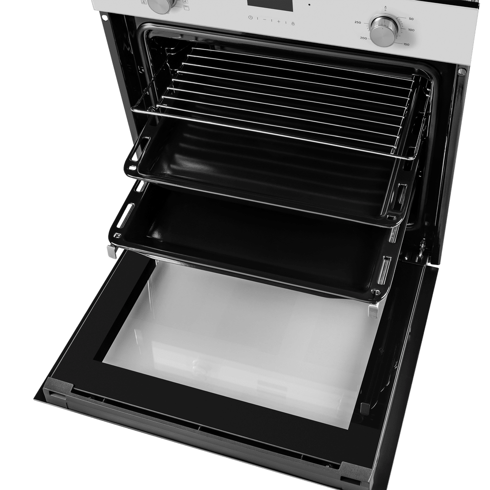 В стандартную комплектацию любого духового шкафа входят один или два противня — эмалированных или с антипригарным покрытием — и решетка. Единственный противень, как правило, имеет низкие бортики и предназначается для приготовления выпечки. Если духовка комплектуется двумя противнями, то второй отличается более высокими бортиками — его можно использовать для запекания мяса, птицы, овощных блюд. На решетке в духовке, не оснащенной грилем, обычно устанавливаются формы для запекания — стальные, керамические или стеклянные. В духовках премиум-класса количество противней может быть увеличено: к стандартному комплекту добавляются противни с перфорацией для мяса, специальные поддоны для сбора выделившегося сока.