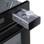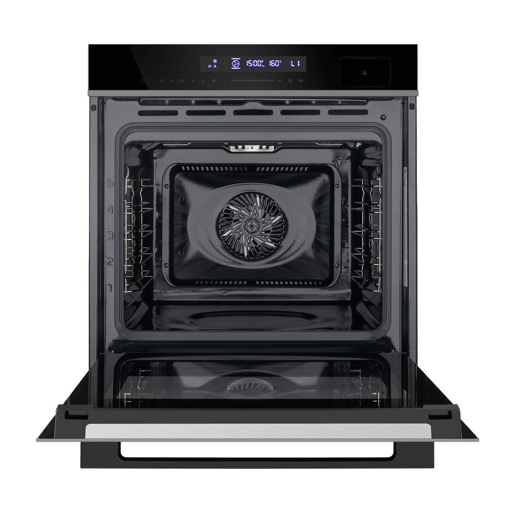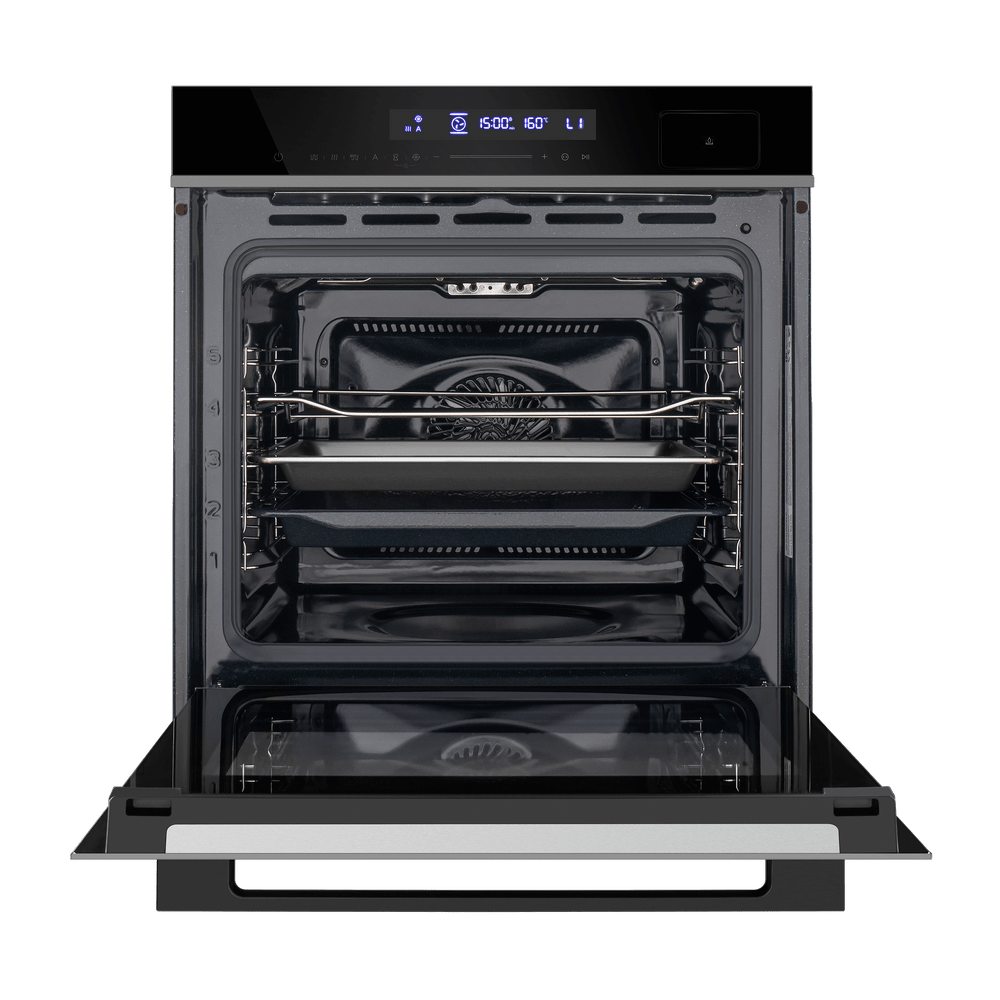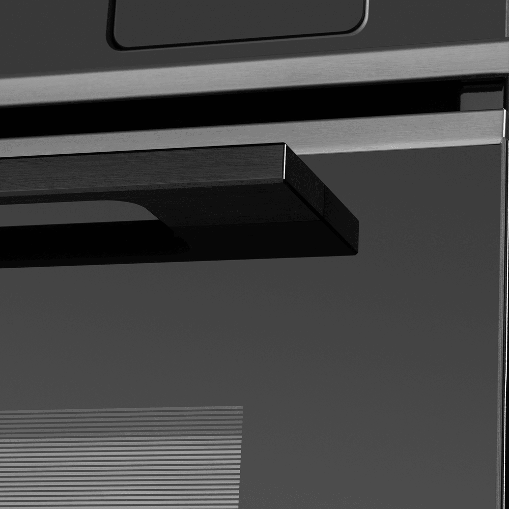 Особенности дизайна и внешней панели управления — также важный пункт при выборе духовки на кухню. В данной модели нужно обратить внимание на цвет — черный, охлаждение двери, чтобы поверхность и мебель вокруг не нагревались.