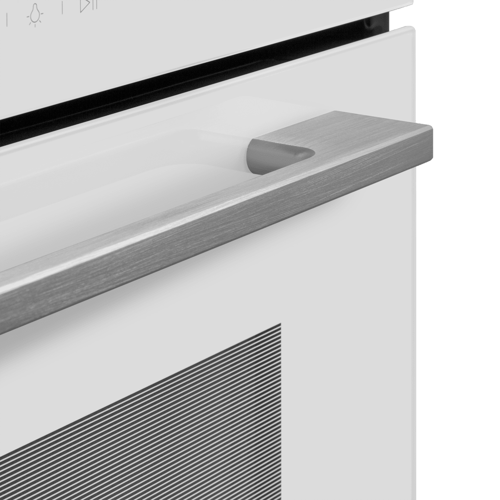 Особенности дизайна и внешней панели управления — также важный пункт при выборе духовки на кухню. В данной модели нужно обратить внимание на цвет — белый, охлаждение двери, чтобы поверхность и мебель вокруг не нагревались.