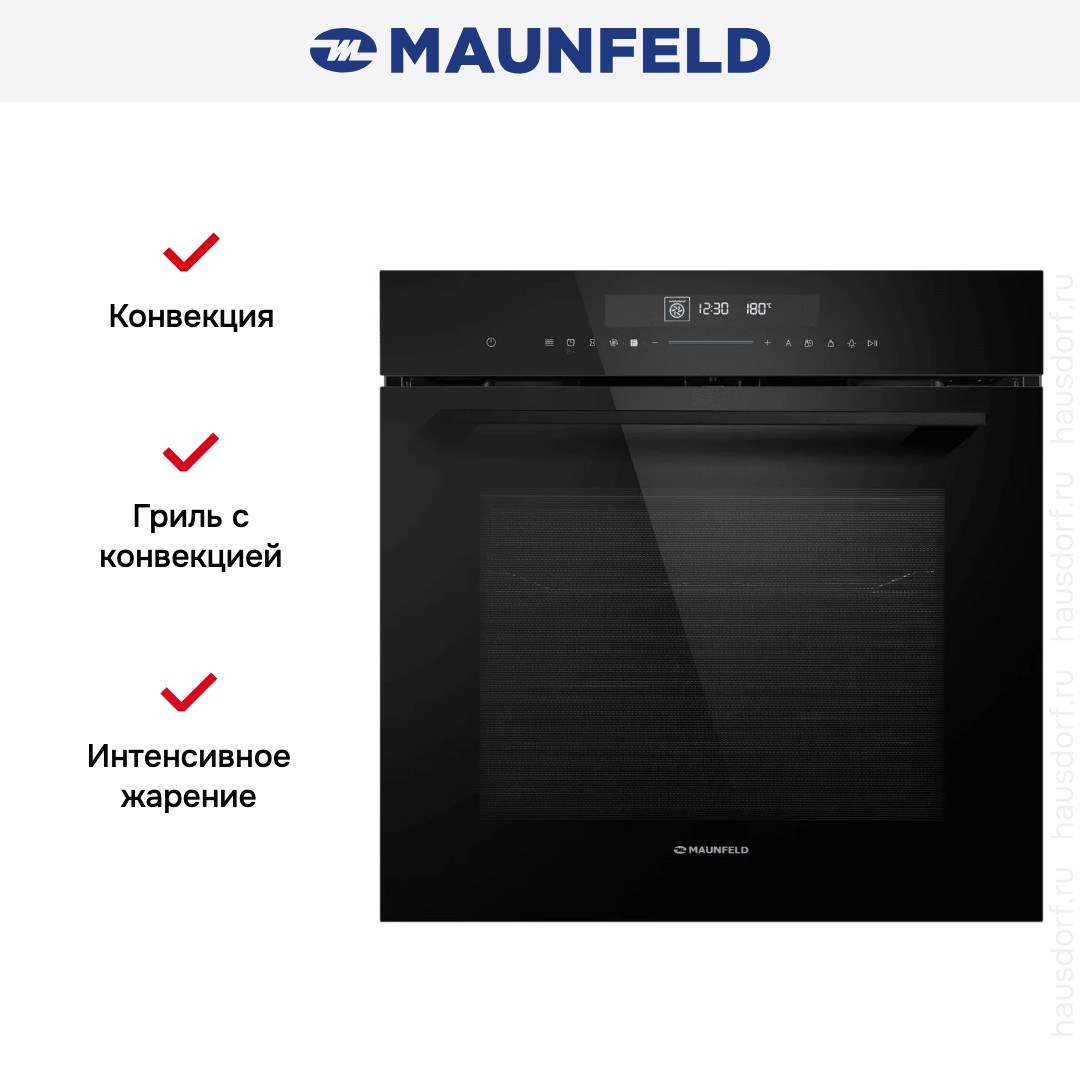 Количество режимов работы в духовом шкафу Маунфилд: 17. В число доступных программ входят: классический нагрев, нижний нагрев, конвекция, приготовление с помощью микроволн, гриль для создания хрустящей корочки, пицца, и другие. Тип гриля в этой модели — электрический.