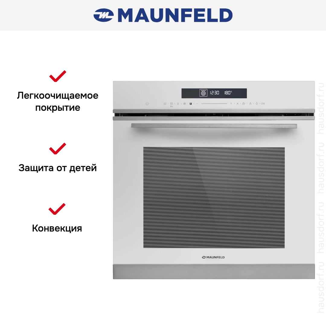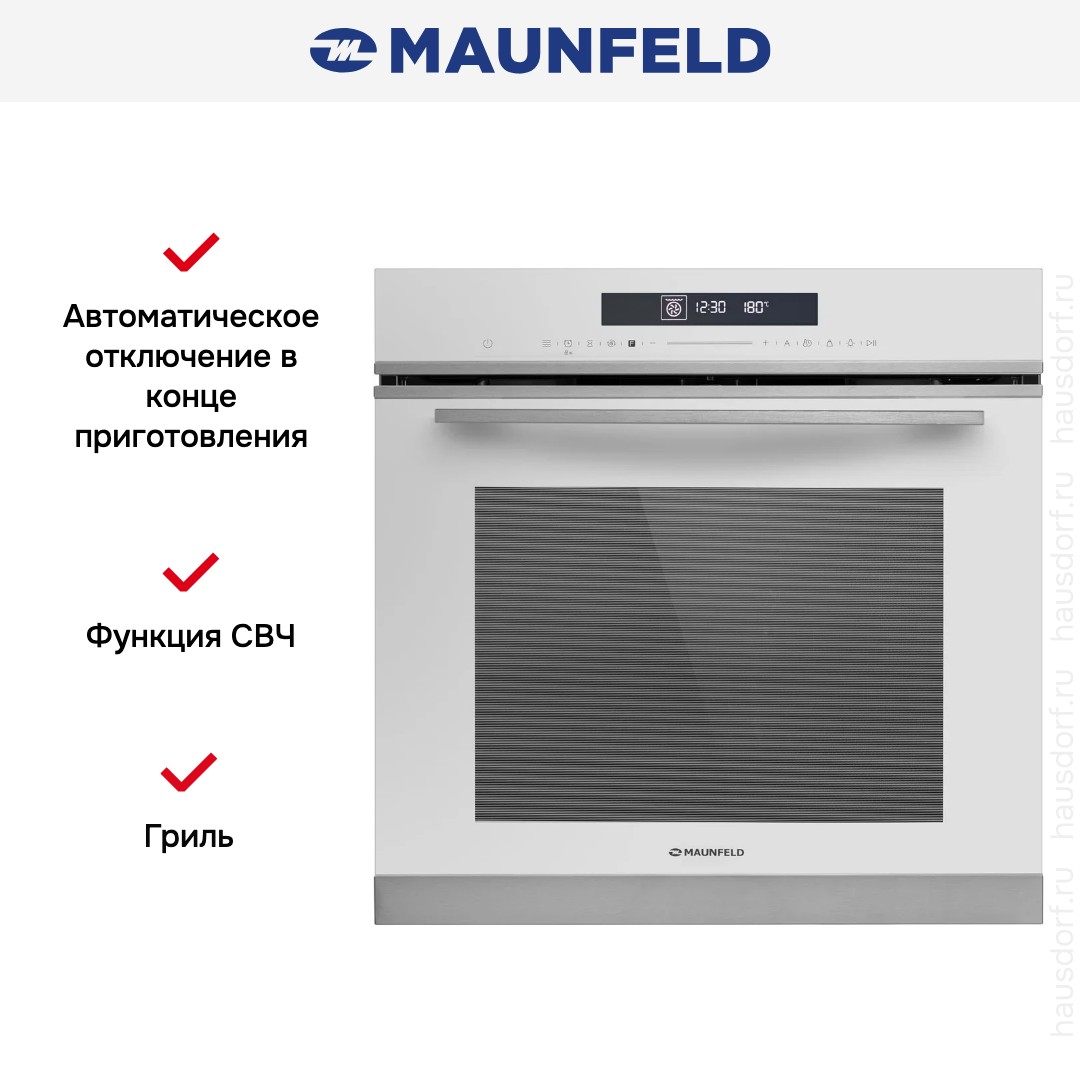 Готовьте свои лучшие блюда и пробуйте новые рецепты с духовым шкафом Maunfeld MEOR7217SMW! Стандартные размеры и большой объем внутренней камеры — выбор тех, кто много готовит для семьи или частых праздничных встреч с друзьями. Желательно заранее продумать расположение такой модели в кухонном гарнитуре.