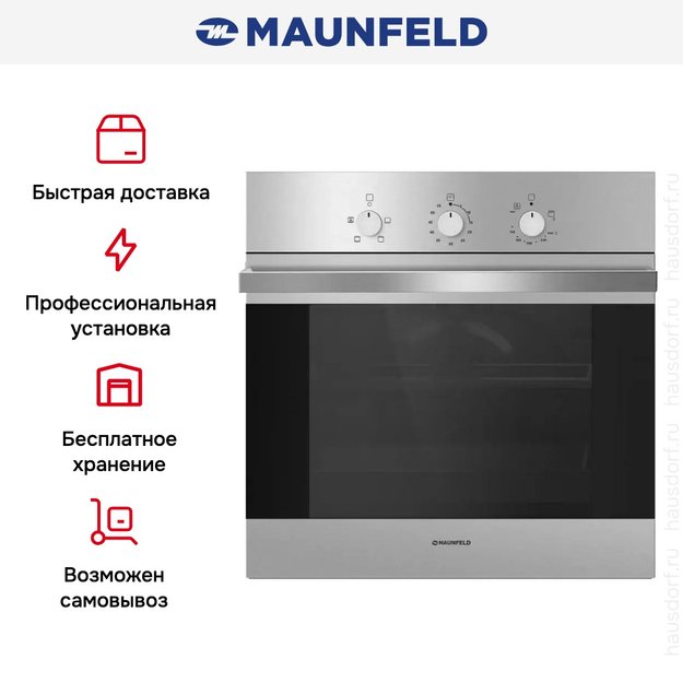 Maunfeld MGOG.673S — независимый духовой шкаф шириной 60 см. Газовый способ нагрева на открытом огне обеспечивает блюдам неповторимый вкус. На фасаде из нержавеющей стали расположены три цельнометаллических поворотных переключателя, регулирующих температуру, режим и время приготовления. Большой объем 67 литров и 5 уровней приготовления предоставляют самый широкие возможности для кулинаров. В комплект входят телескопические направляющие Hettich, с которыми извлечение противней из камеры становится совершенно безопасным, а также решетка и два противня. Модель можно подключать не только к централизованному, но и к баллонному газу благодаря специальным форсункам.