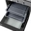 Способ открытия дверцы духовки — немаловажный фактор, который нередко влияет на выбор модели. В современных духовых шкафах используется несколько способов открывания дверцы и, соответственно, их крепления. Самый распространенный и привычный — откидной: петли дверцы располагаются в нижней части духовки, а открытие производится при помощи ручки, закрепленной в верхней части дверцы. Такой вариант используется как в электрических, так и в газовых духовках, встраиваемых и настольных. В ряде моделей ручка отсутствует, а для открывания дверцы достаточно нажать на ее верхнюю часть. Устройства высокой ценовой категории оснащаются также механизмом плавного открывания дверцы: в этом случае за ручку не нужно тянуть, а дверца распахивается самостоятельно. Откидные дверцы часто делают съемными, благодаря этому очистка их значительно упрощается.
