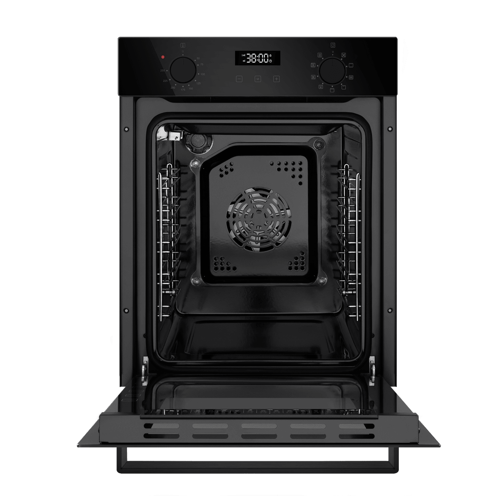 Особенности дизайна и внешней панели управления — также важный пункт при выборе духовки на кухню. В данной модели нужно обратить внимание на цвет — черный, охлаждение двери, чтобы поверхность и мебель вокруг не нагревались.