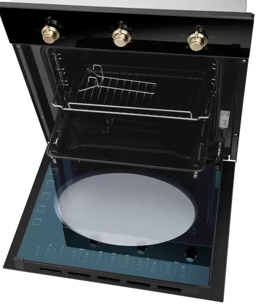 Газовый духовой шкаф Maunfeld EOGC604RBG.MT выполнена из стеклокерамики с металлической рамкой в белом цвете и бронзовой фурнитурой. Простое механическое управление с металлическими поворотными регуляторами в ретро-стиле поможет без проблем установить нужный режим или температуру. Благодаря тройному остеклению дверцы образуется «холодный фронт», который защитит пользователя от ожогов. Также дверца шкафа является съемной и разборной.