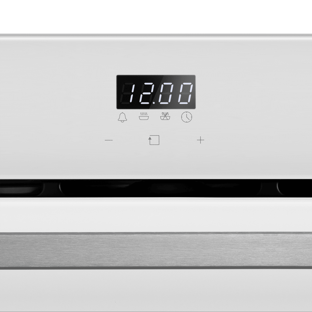 Особенности дизайна и внешней панели управления — также важный пункт при выборе духовки на кухню. В данной модели нужно обратить внимание на цвет — белый, охлаждение двери, чтобы поверхность и мебель вокруг не нагревались.
