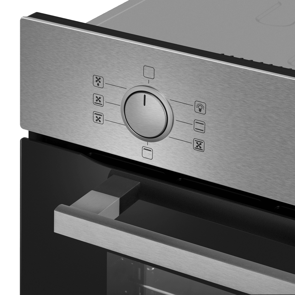Особенности дизайна и внешней панели управления — также важный пункт при выборе духовки на кухню. В данной модели нужно обратить внимание на цвет — нержавеющая сталь, охлаждение двери, чтобы поверхность и мебель вокруг не нагревались.