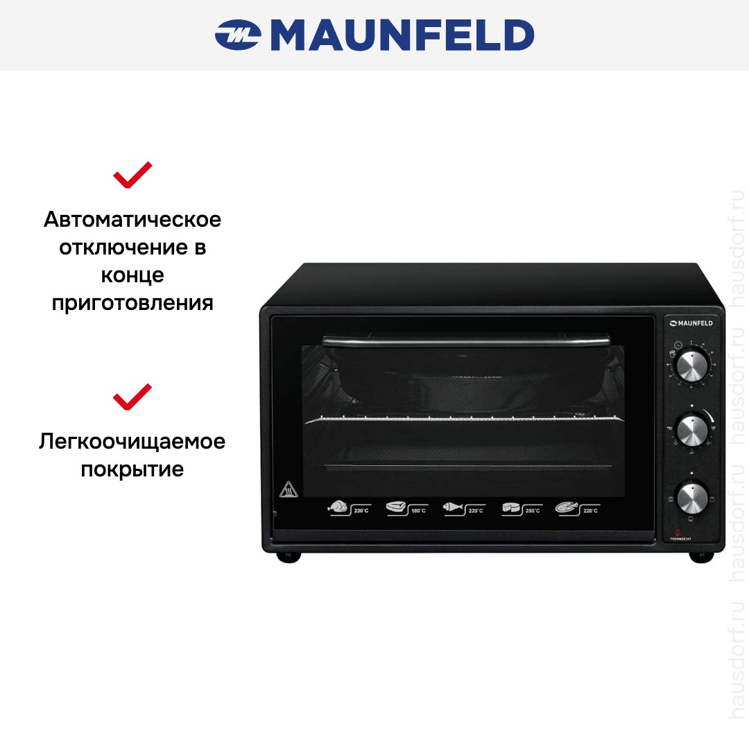 Количество режимов работы в духовом шкафу Маунфилд: 3. В число доступных программ входят: классический нагрев, верхний нагрев, нижний нагрев, и другие.