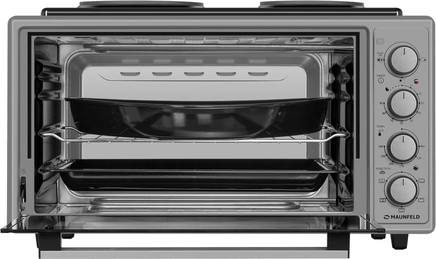 Количество режимов работы в духовом шкафу Маунфилд: 5. В число доступных программ входят: классический нагрев, верхний нагрев, нижний нагрев, конвекция, и другие. Помимо основных программ воспользуйтесь специальными возможностями этого прибора: вентилятором, совмещенным с нижним нагревом; и другими.