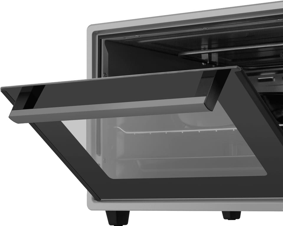Навесной способ открытия преобладает у настольных моделей: петли в этом случае располагаются слева или справа, а дверца открывается за ручку, расположенную с другой стороны, — так же, как у микроволновки или холодильника. Оригинальна и безопасна выдвижная дверца у электрических духовок — к ней с внутренней стороны прикрепляются все комплектующие, включая противни и направляющие. При выдвижении все они также извлекаются наружу, понижая тем самым риск ожога. Недостаток этого способа — постоянное изменение температуры при каждом открытии дверцы.