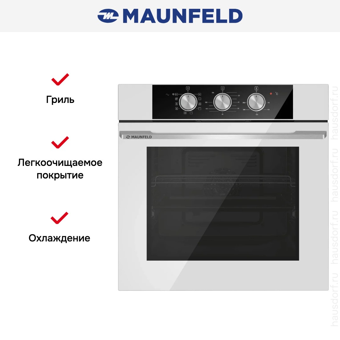 Готовьте свои лучшие блюда и пробуйте новые рецепты с духовым шкафом Maunfeld AEOK7610W! Стандартные размеры и большой объем внутренней камеры — выбор тех, кто много готовит для семьи или частых праздничных встреч с друзьями. Желательно заранее продумать расположение такой модели в кухонном гарнитуре.