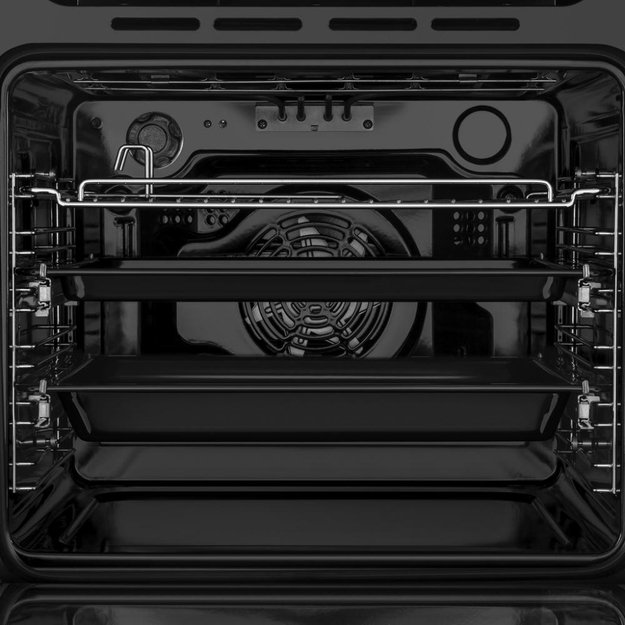 - Телескопические направляющие на двух уровнях позволяют фиксировать противни и решетки при выдвижении и оставлять их в таком положении для остывания.