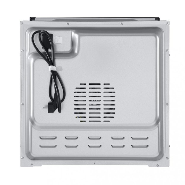 Количество режимов работы данной модели — 9. Они включают в себя конвекцию, разные типы нагрева, размораживание, три вида гриля и другие. Также присутствуют функции «Пицца» для идеального приготовления этого популярного блюда и «Горячий воздух» для пирогов, безе и другой выпечки. Противни удобно размещать на 5 уровнях камеры. Кроме стандартного набора — решетка для гриля, глубокий противень и рукоятка для него, духовка дополнительно укомплектована боковыми направляющими. По завершении приготовления устройство отключается само.