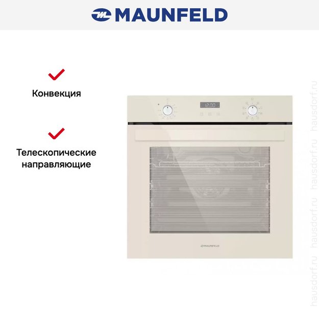 Электрический духовой шкаф MAUNFELD EOEM.769BG — модель элегантного бежевого цвета с черной фурнитурой и тонированным стеклом дверцы. Современный дизайн и стильный внешний вид позволит вписать его в интерьер практически любой кухни. Благодаря независимой установке вы сможете разместить устройство там, где захотите, автономно от остальных кухонных приборов. Большой объем духовки 76 литров дает возможность приготовить множество разных блюд легко и быстро, что особенно удобно, если у вас большая семья или вы любите приглашать гостей. В комплект входят решетка и два глубоких противня. Электронное управление поворотными регуляторами и сенсорными кнопками позволит разобраться в настройках прибора без лишних усилий.