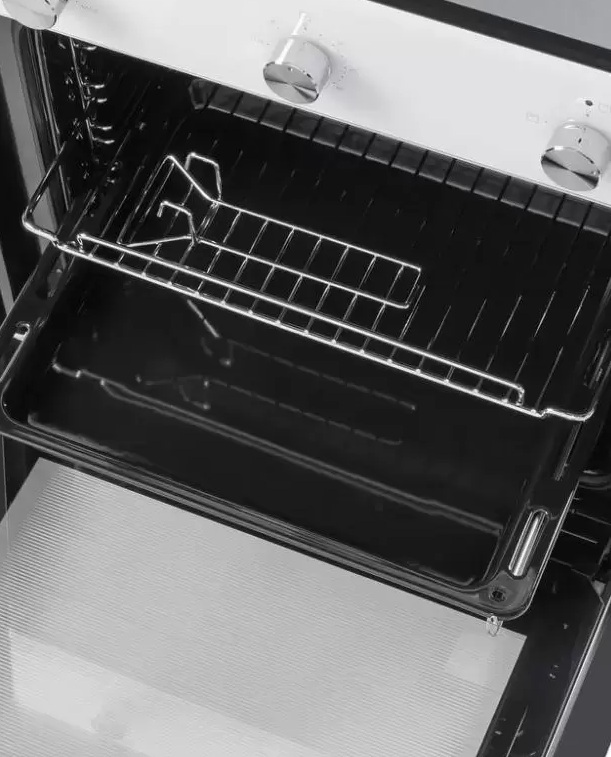 Автоматическое отключение системы газоподачи в случае отсутствия огня обеспечивает безопасность пользователя. Благодаря использованию эмали легкой очистки достигается эффект easy clean, что позволяет легко удалить бытовые загрязнения даже без использования специальных средств. В базовую комплектацию входят решетка для запекания, которую можно использовать для готовки в режиме гриля, глубокий противень и рукоятка для него. Телескопические направляющие обеспечивают легкость движения посуды внутри духового шкафа — противень легко вытаскивается, даже пока остается горячим.