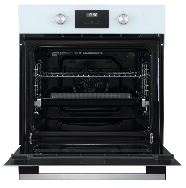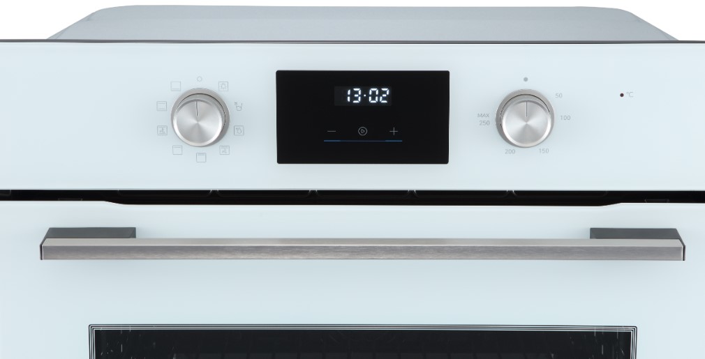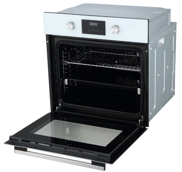 Особенности дизайна и внешней панели управления — также важный пункт при выборе духовки на кухню. В данной модели нужно обратить внимание на цвет — белый,