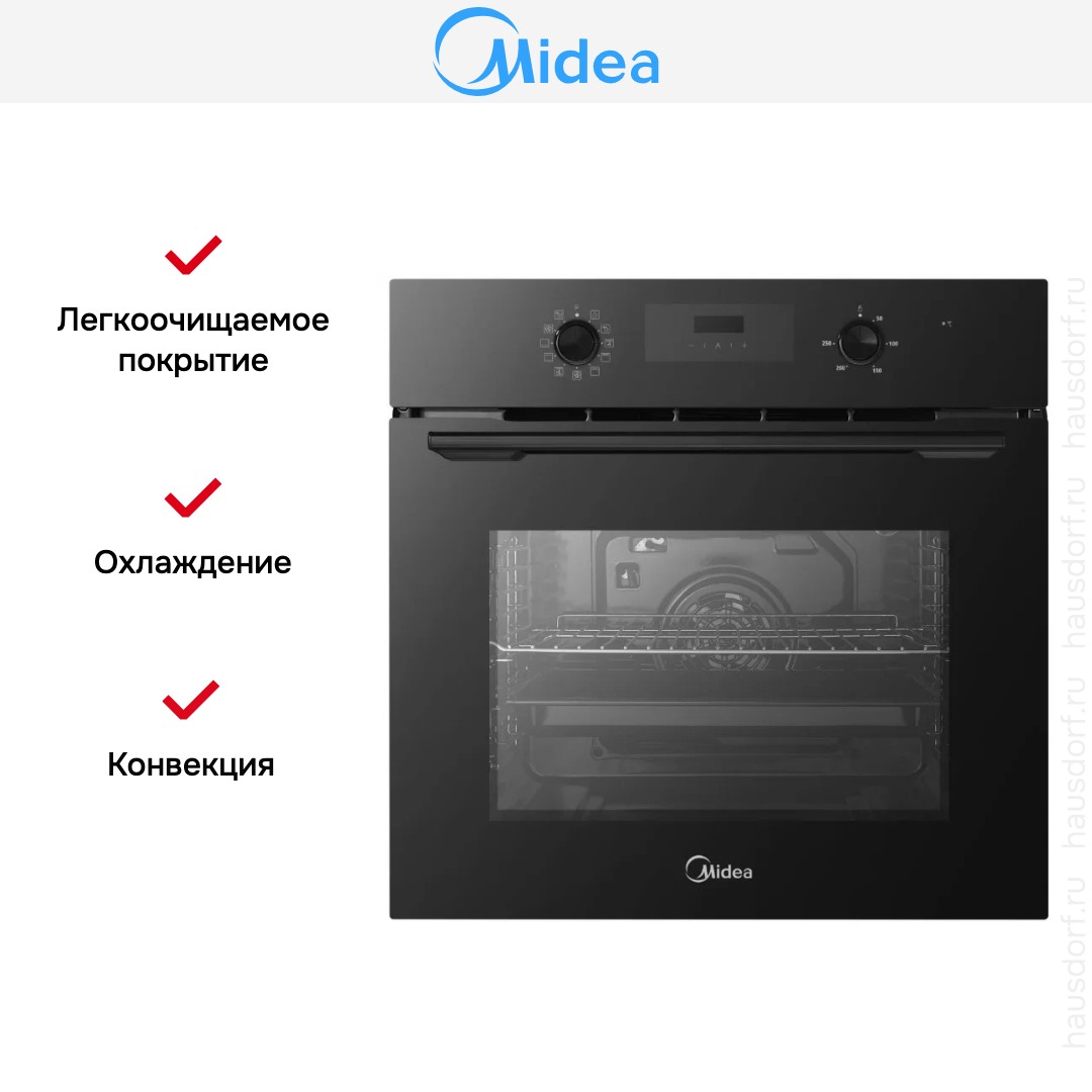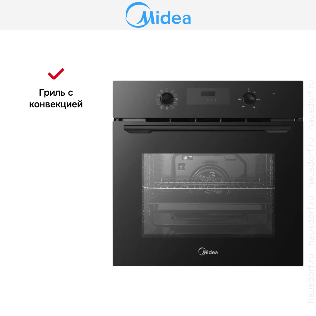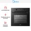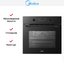 Духовой шкаф Midea MO69103GB — независимая электрическая модель, разработанная для встраивания в кухонную мебель и оптимизированная под повседневное использование. Его строгий черный корпус гармонично впишется в современный интерьер, а компактные габариты 59.5×59.5×57.5 см позволяют разместить прибор в стандартной нише размером 56×57×60 см. Откидная дверца с двойным стеклом сохраняет тепловую инерцию, а аккуратные утапливаемые регуляторы и сенсорные кнопки создают сбалансированный минималистичный образ.