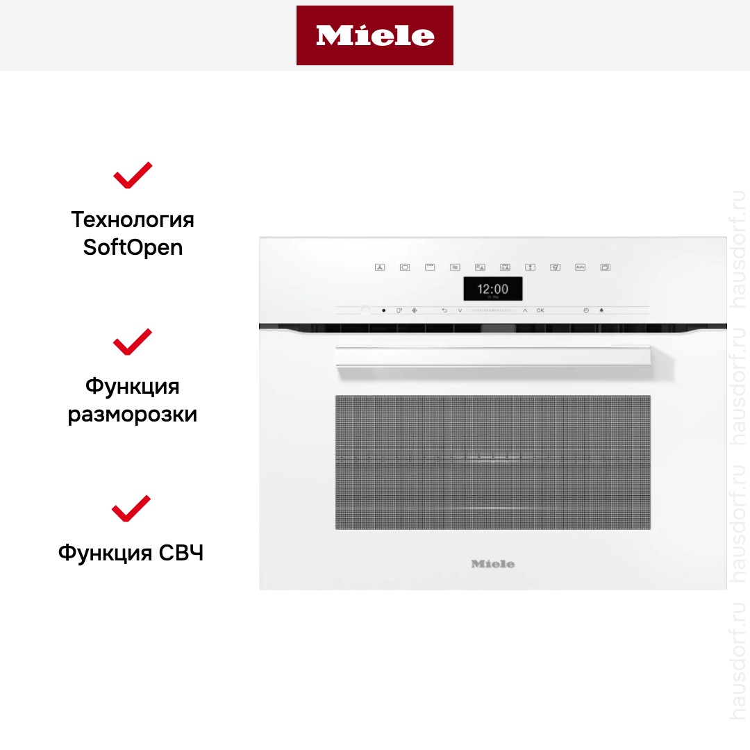 Дверца этой компактной модели высотой 45 см защищена покрытием CleanGlass от отпечатков пальцев и может чиститься без применения специальных средств. Амортизаторы SoftOpen и SoftClose гарантируют плавность хода при открывании и закрывании дверцы. Технология Quick&Gentle сочетает разные способы нагрева, в том числе СВЧ, для сокращения времени приготовления. Функция «конвекция +» позволяет готовить на нескольких уровнях одновременно.